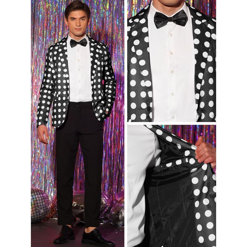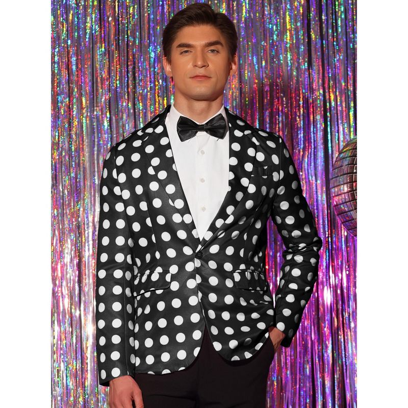 Lars Amadeus Men's Polka Dots Notch Lapel One Button Wedding Sports Coats Black Small