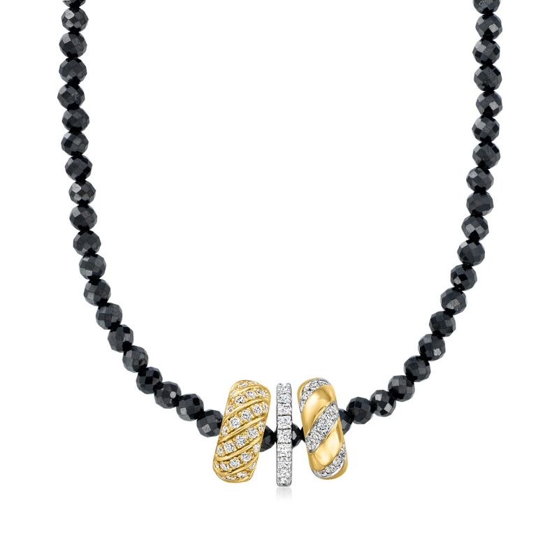 Ross-Simons 30.00 ct. t.w. Black Spinel Bead Necklace With 18kt Gold Over Sterling Size 18