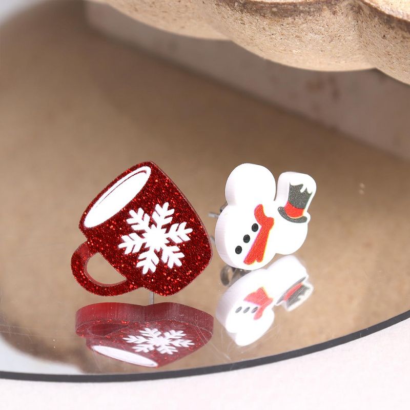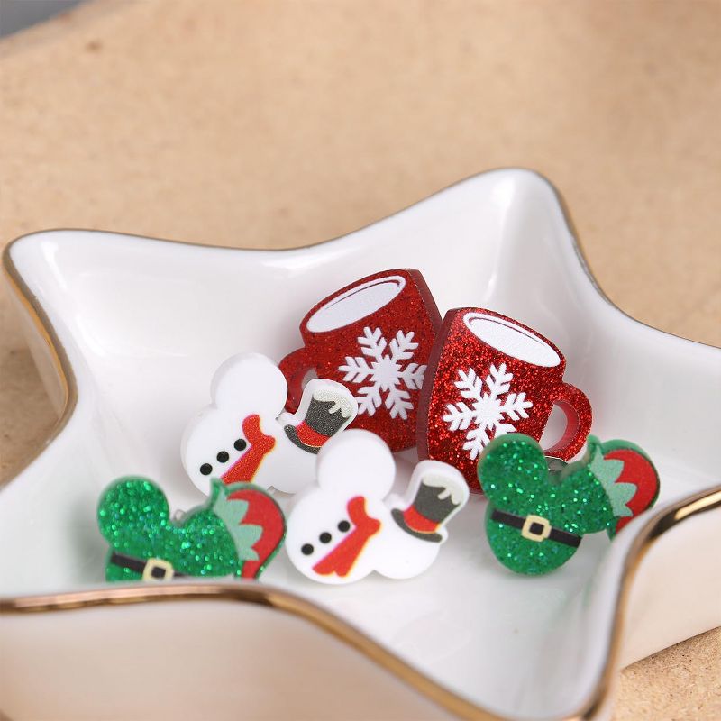Christmas Earrings Set for Women: Holiday Tree & Snowflake Stud and Dangle Jewelry. Red Green One Size