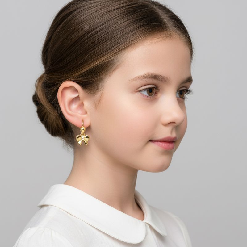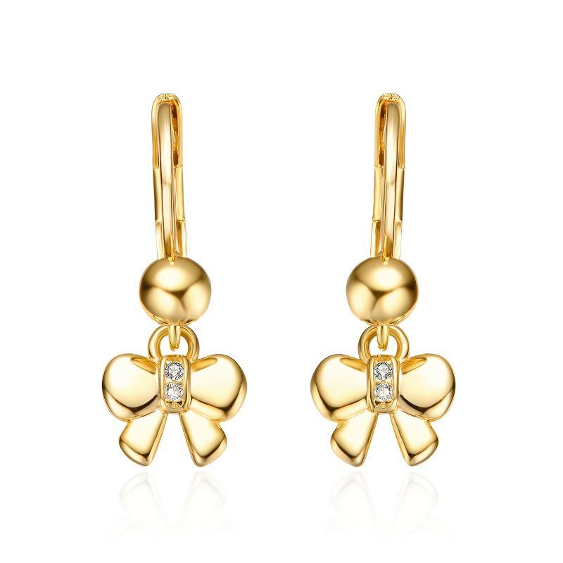 Guili 14K Yellow Gold Plated Bow Dangling Earrings with Ruby Cubic Zirconia for Kids Offering a Stylish Sophisticated Jewelry Option