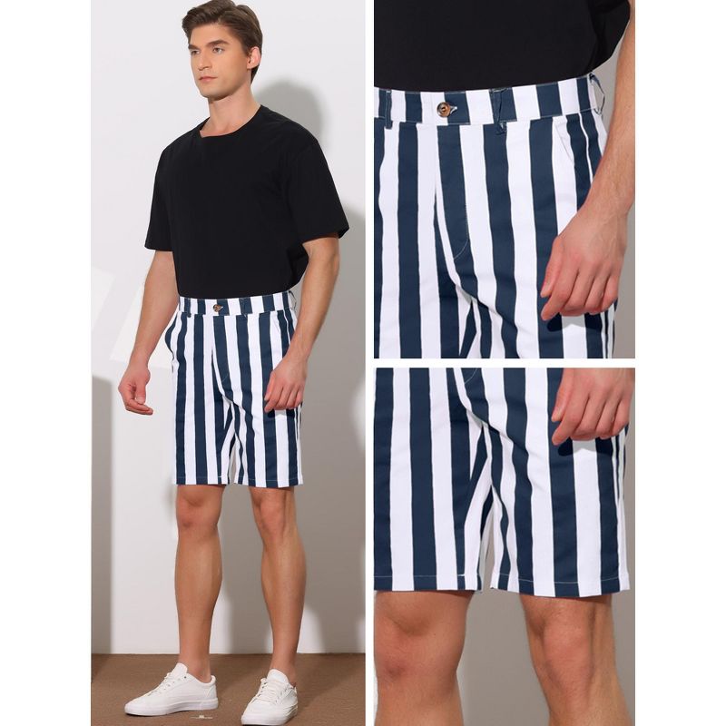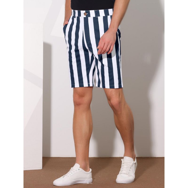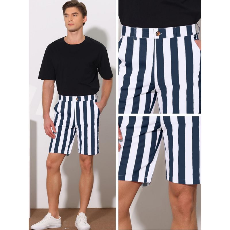 Lars Amadeus Men's Summer Regular Fit Flat Front Chino Striped Dress Shorts 2 Packs Navy/Yellow 32