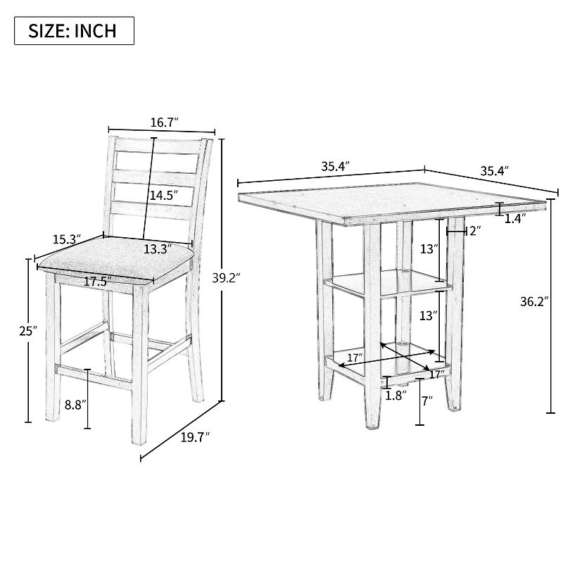 KTMBDW 5-Piece Dining Table Set | Wood Kitchen Table with 4 Upholstered Chairs | Space-Saving and Modern Design | for Dining Room, Espresso