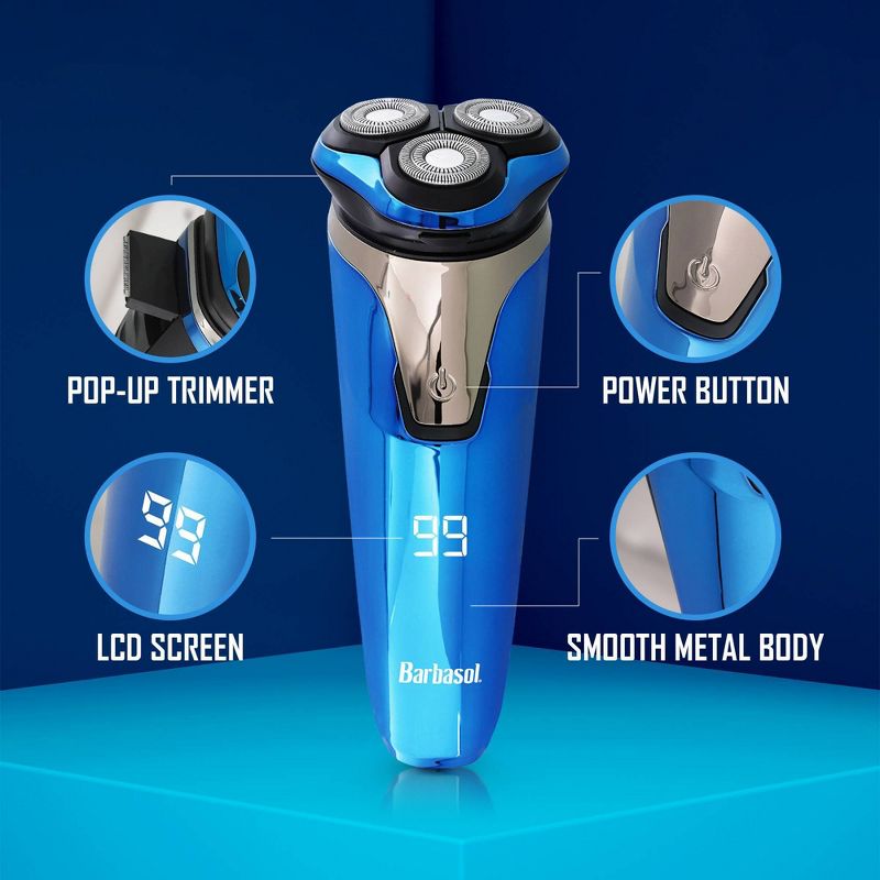 Barbasol LCD Display Wet and Dry 3 Head Rechargeable Rotary Shaver with Pop Up Trimmer - 2ct