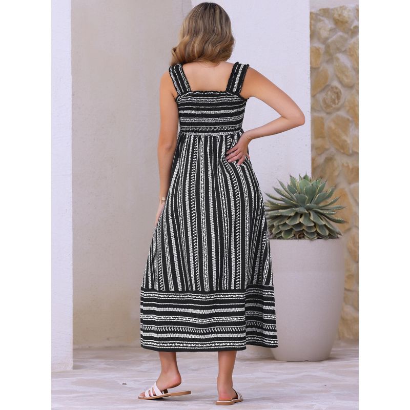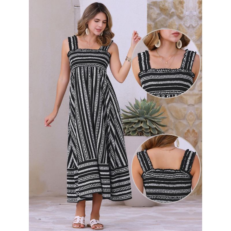 INSPIRE CHIC Women's Summer Sleeveless Smocked Printed Vacation Boho Maxi Dress Black X-Large