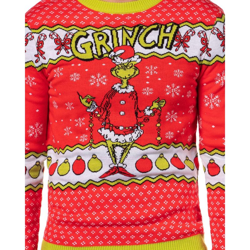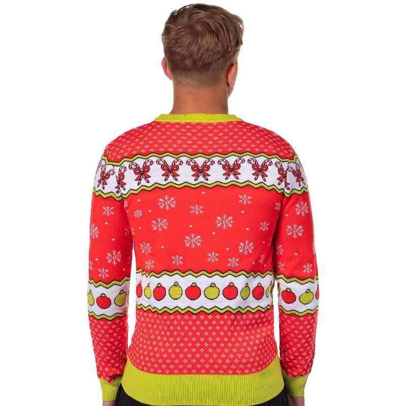 Dr Seuss GRINCH Men's Snowflakes Fair Isle Adult Holiday Ugly Sweater for Christmas (Large) Red