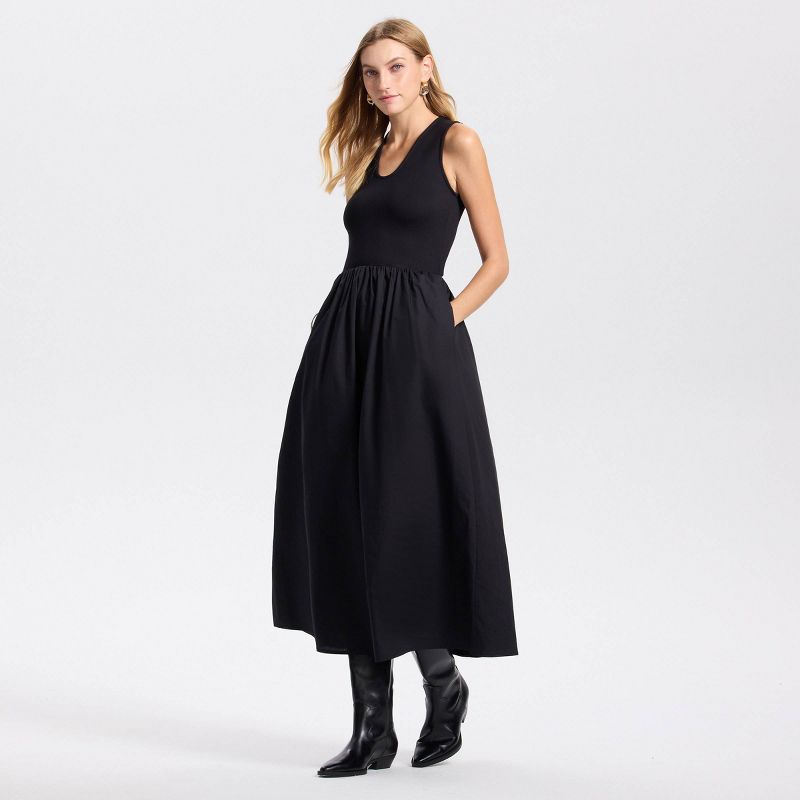 Women's Sleeveless Knit Midi A-Line Dress - A New Day™ Black XL