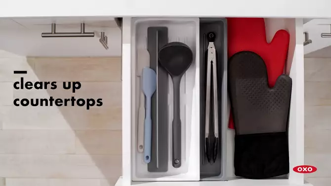 OXO Long Handled Tool Organizer: Utensil & Kitchen Drawer Storage, White/Gray, Hand Wash, TPE & Polypropylene Material