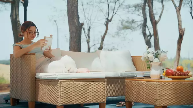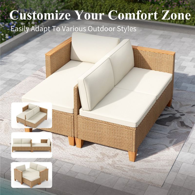 Captiva Designs 3pc Outdoor Patio Wicker Sofa Conversation Set with Wood-top Coffee Table