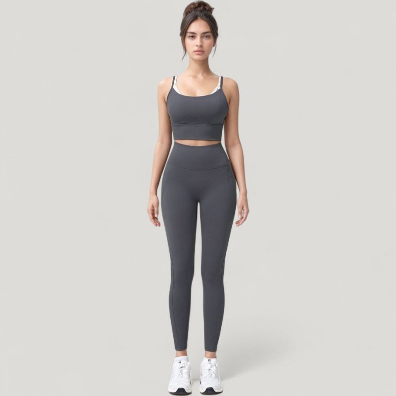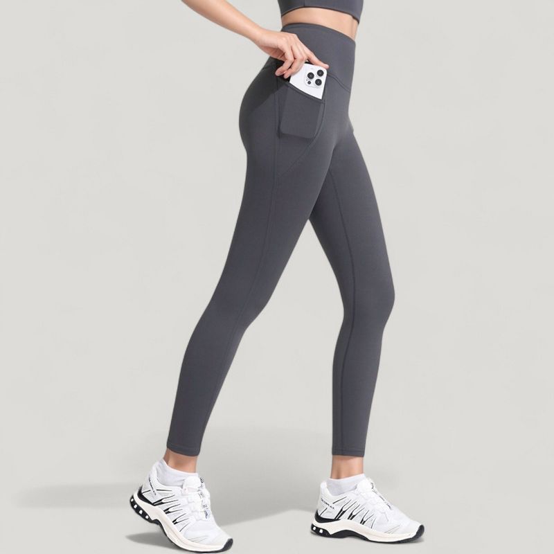 Anna-Kaci Active Women's High Waist Full Length Leggings with Wide Waistband and Side Pocket - Small, Gray