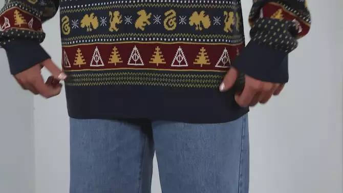 Harry Potter Men's Hogwarts Houses Design Adult Ugly Holiday Knit Sweater (X-Large) Multicolored