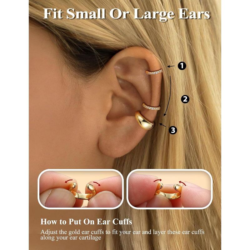 SmallRig 4-Pair Gold Plated Ear Cuffs - Hypoallergenic Clip-On Cartilage Earrings (Silver/Gold), Non-Tarnish Fake Ear Jewelry Set