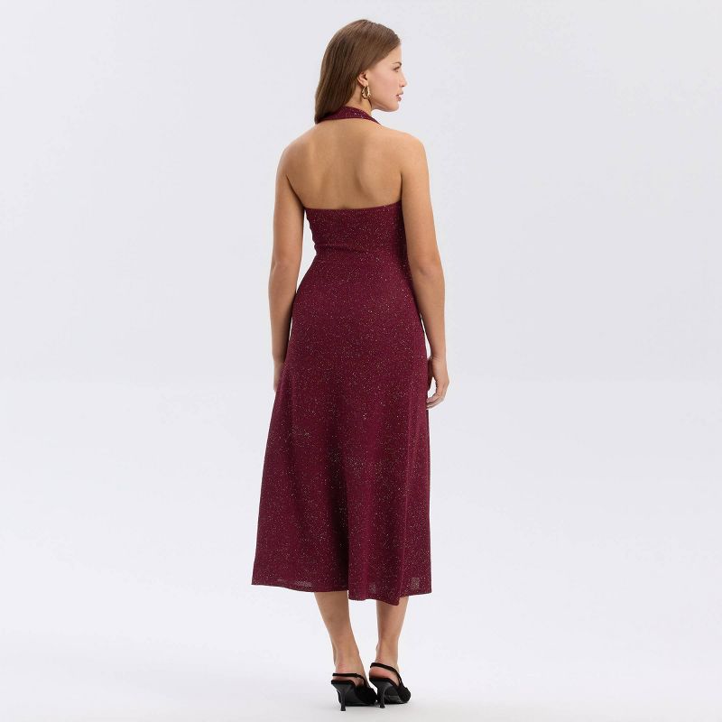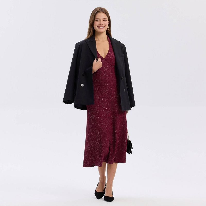 Women's Sleeveless Metallic Knit Plunge Midi Dress - A New Day™ Red XS