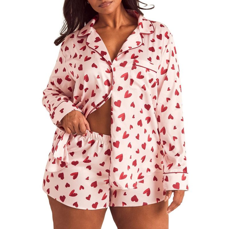 Adore Me Women's Sammie PJ Sleepwear 2X / Heart Print Pink.