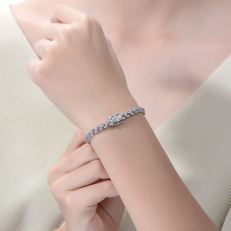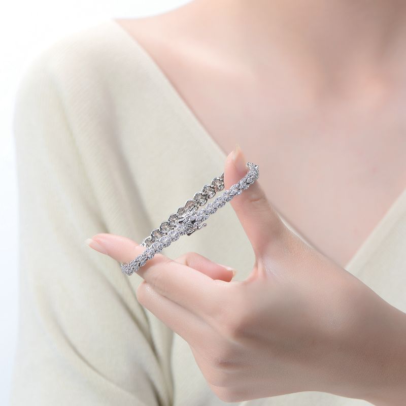 Guili Rhodium-Plated Sterling Silver with Cubic Zirconia Round Flat Link Tennis Bracelet, Modern and Sleek Design for a Chic, Elegant Style