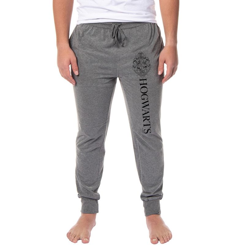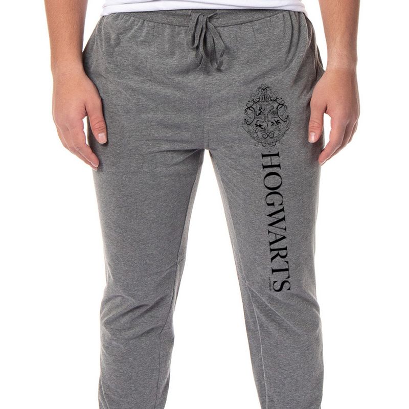 INTIMO Harry Potter Adult Mens Hogwarts Crest Collegiate Style Jogger Pajama Lounge Pants Medium Grey