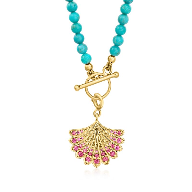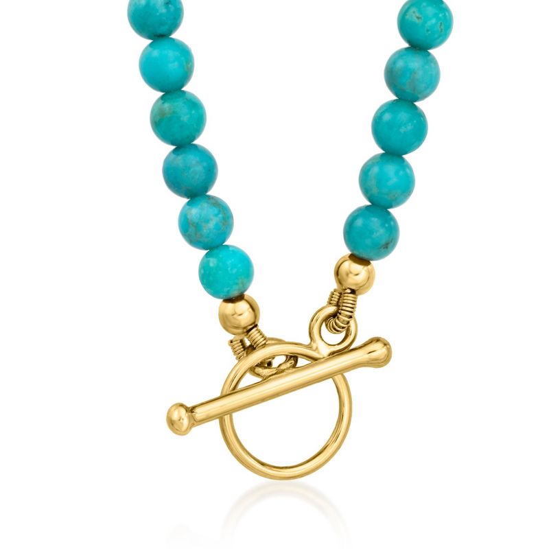 Ross-Simons 3.5-4mm Turquoise Bead Charm-Compatible Toggle Necklace in 18kt Gold Over Sterling. 16 inches