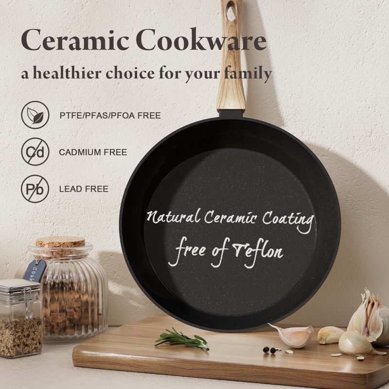 Aoibox 23-Piece Non-Stick Ceramic Cookware Set with Frying Pans, Healthy & Non-Toxic, Induction Compatible, PFAS/PTFE/PFOA Free, Black