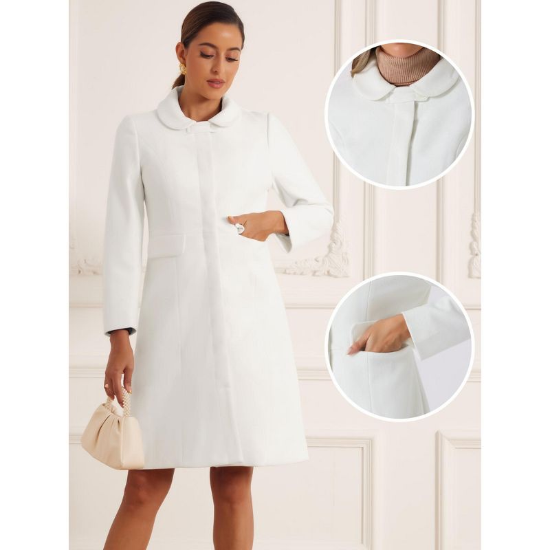 INSPIRE CHIC Women's Buttons Long Sleeve Pockets A-Line Casual Winter Collared Coats Large Cream White