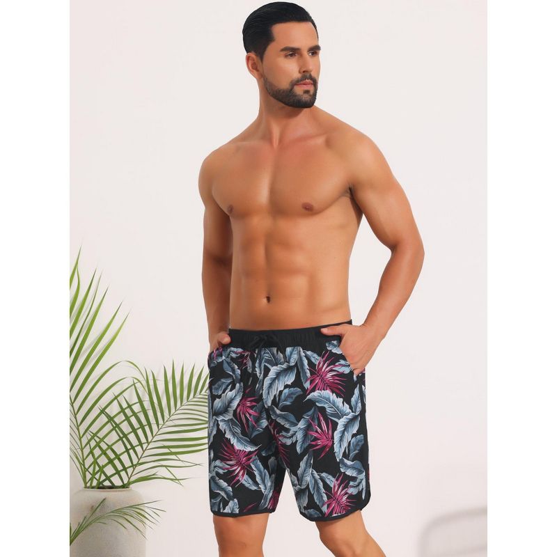 INSPIRE CHIC Men's Printed Elastic Liner Drawstring Swimming Shorts with Pockets 38 Black Red