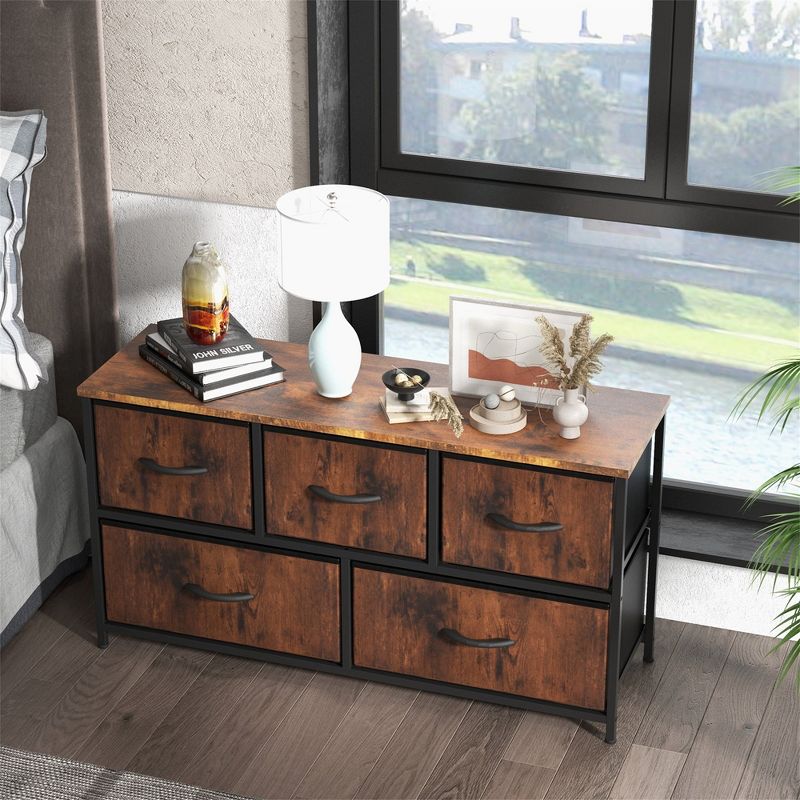 Resenkos 5-Drawer Bedroom Dresser: Spacious Chest with Storage Tower, Furniture Organizer Unit for Bedroom, Living Room, or Hallway Brown