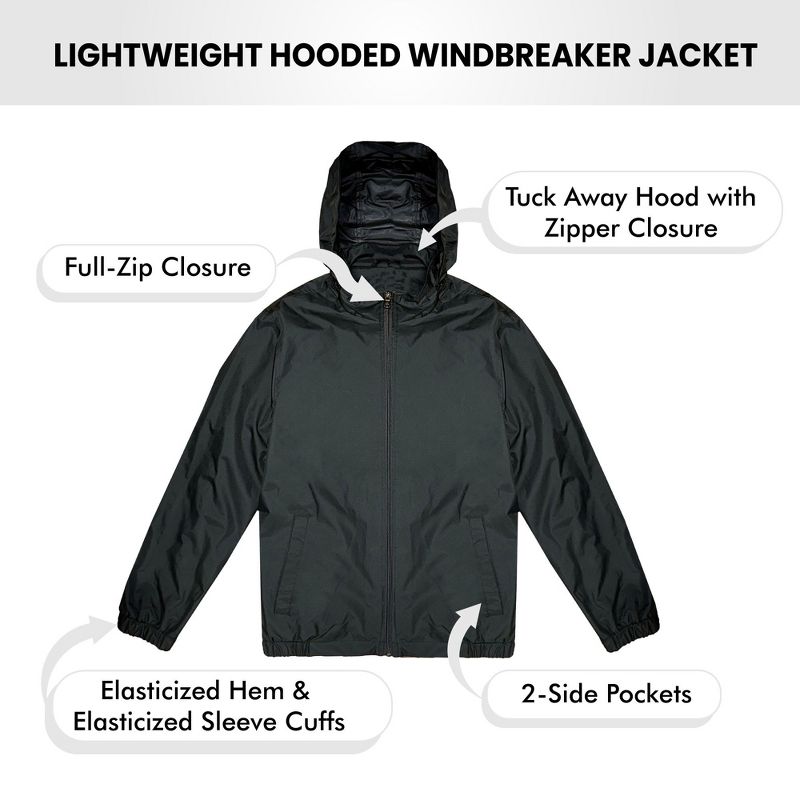 Galaxy Men’s Fleece Lined Windbreaker Jacket Coat With Tuck In Hood