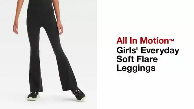 Girls' Everyday Soft Flare Leggings - All In Motion™ Black S: High Rise, Moisture Wicking, UPF 50+