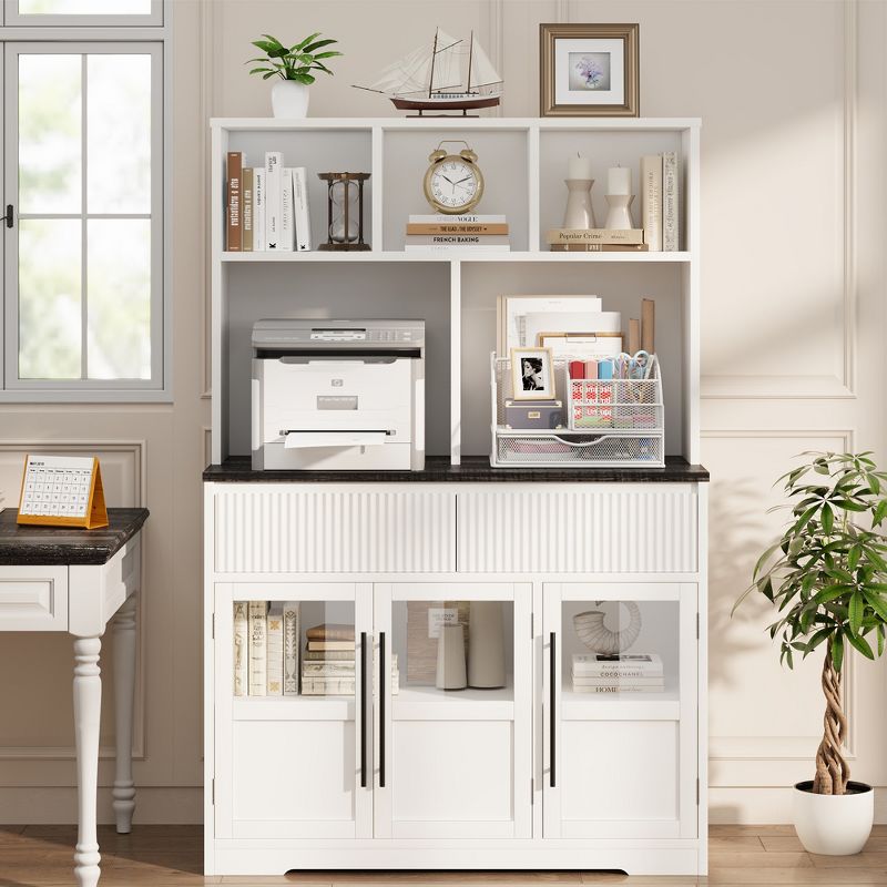 60'' Kitchen Pantry Cabinet, Tall Kitchen Pantry with Glass Doors, Kitchen Storage Cabinet with Drawers