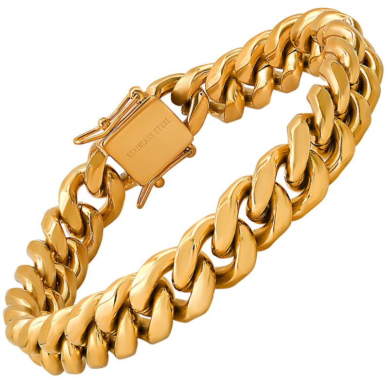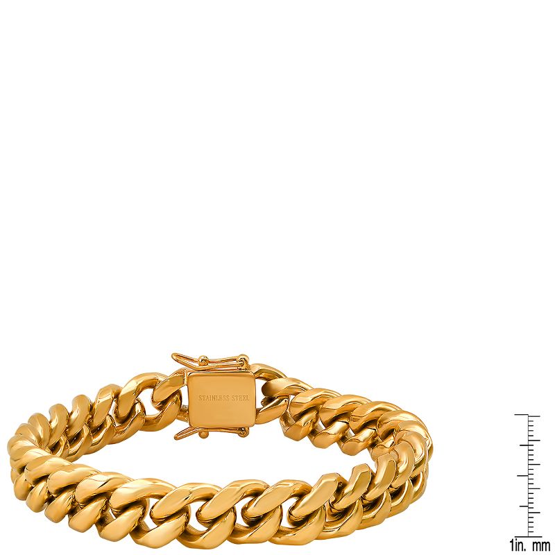 Steeltime Men's 18k gold plated stainless steel heavy cuban link chain bracelet
