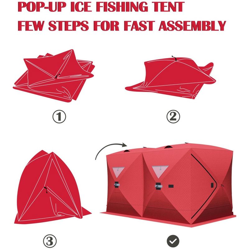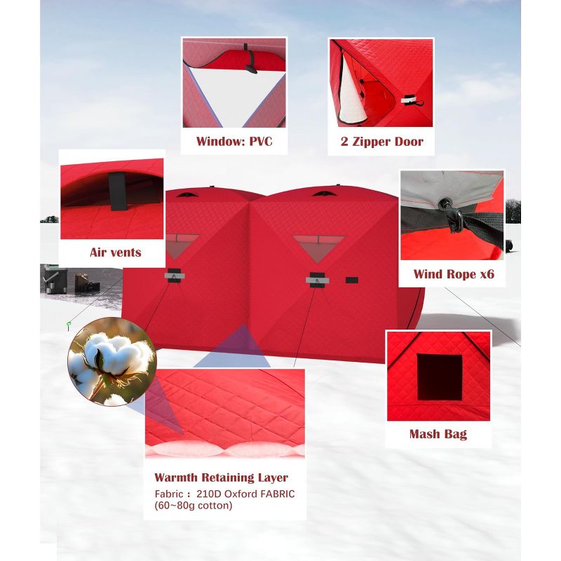 Coucheta Pop Up Ice Fishing Tent Insulated Ice Fishing Shelter Portable Hub-Style Shelter Shanty Windproof, Spacious Interior for 1 to 8 Person