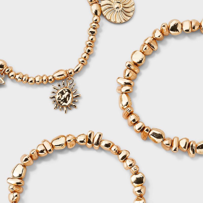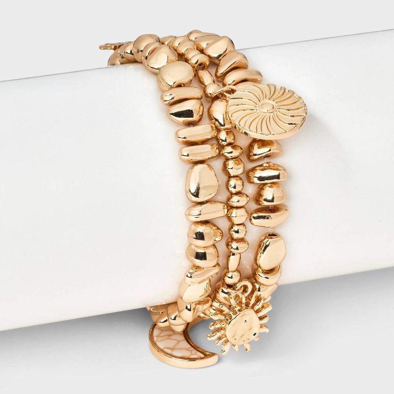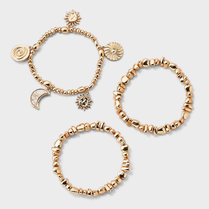 Mixed Beaded and Celestial Charm Bracelet Set 3ct- Universal Thread™ Gold