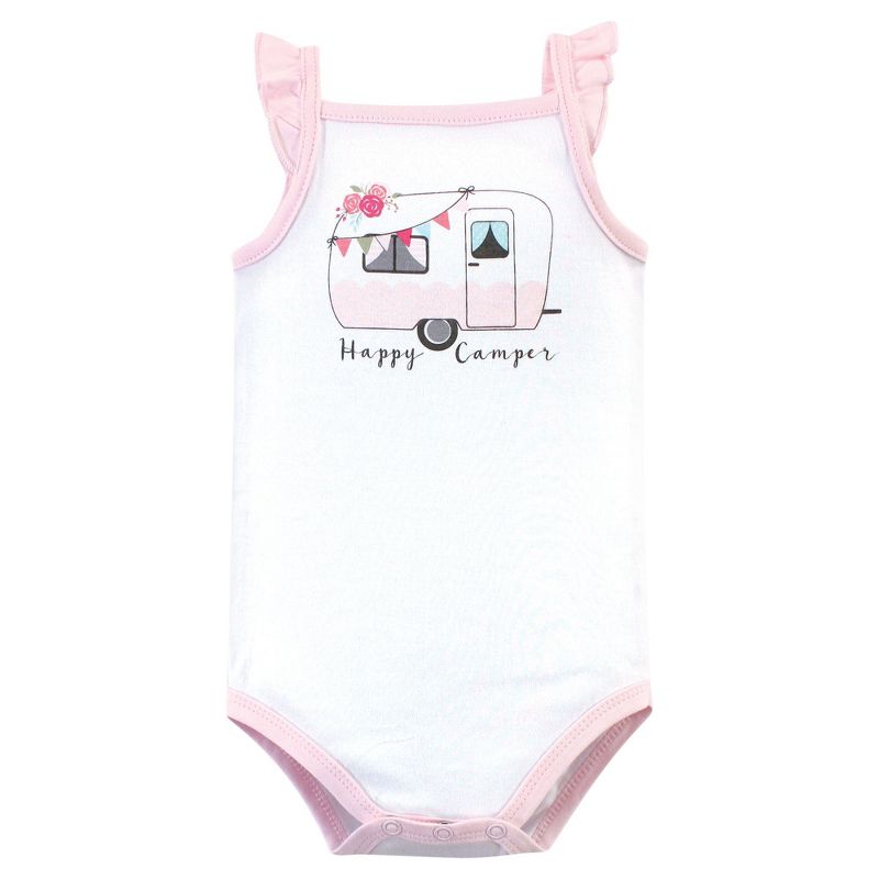 Hudson Baby Infant Girl Cotton Sleeveless Bodysuits 5pk, Pink Happy Camper, 3-6 Months