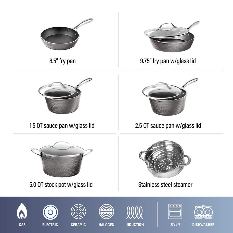 Granitestone 10 Pc Hammered Cookware Set Nonstick Pots and Pans Set
