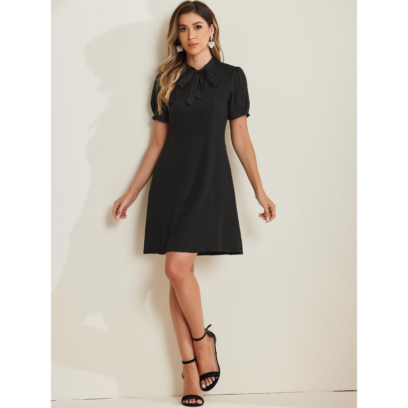 INSPIRE CHIC Women's Bow Tie Keyhole Neck Puff Sleeve Elegant Work Dress Large Black