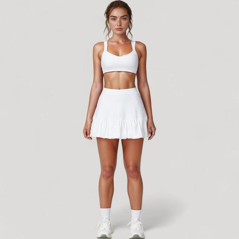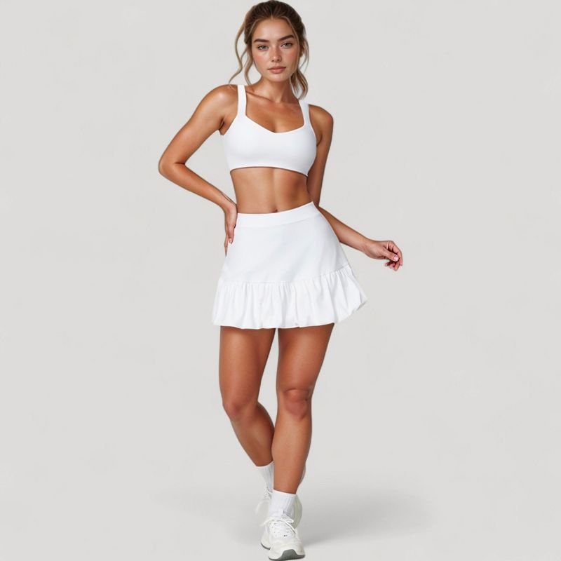 Anna-Kaci Active Women's Ruffle Hem High Waist Skort Built-In Shorts Stretch Waistband Flowy Lightweight Design - X Large, White