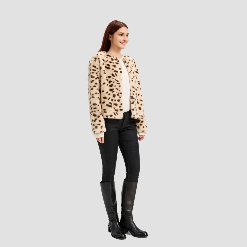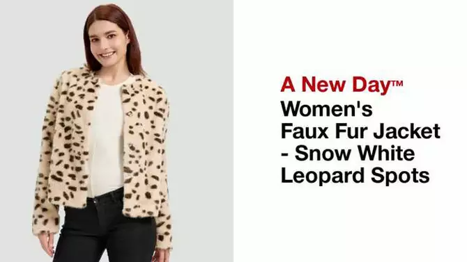 Women's Faux Fur Jacket - A New Day™ Snow White Leopard Spots M