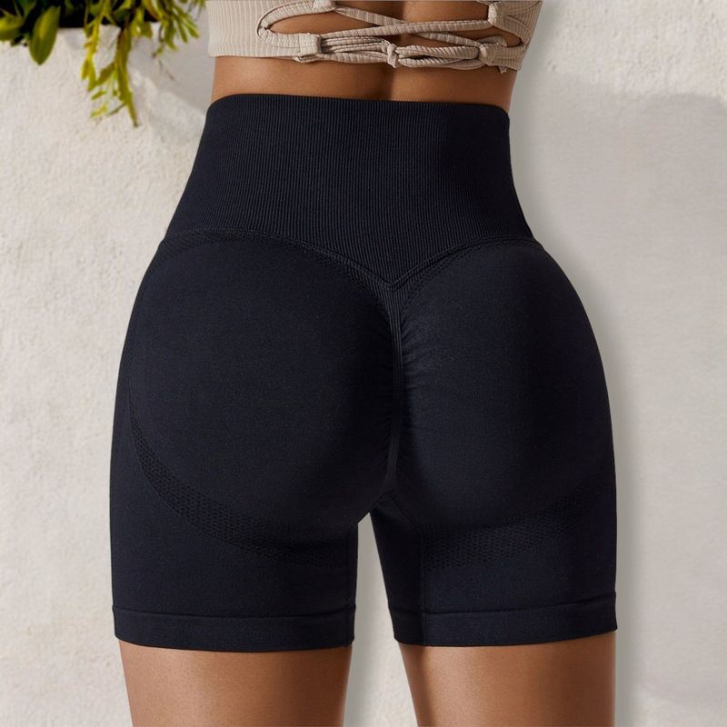 Anna-Kaci Active Women's High Waist Seamless Butt Lifting Yoga Shorts- Large, Black