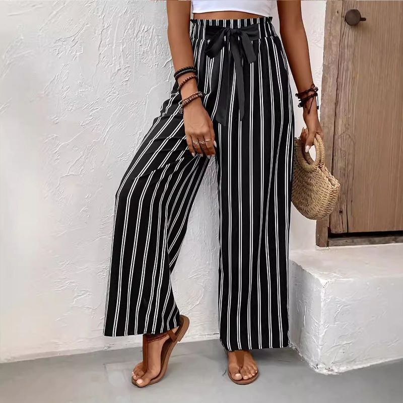 Womens Wide Leg Pants High Elastic Waist Casual Flowy Trousers Business Work Pants with Pockets Black S