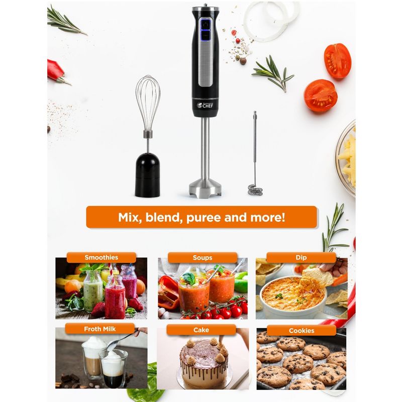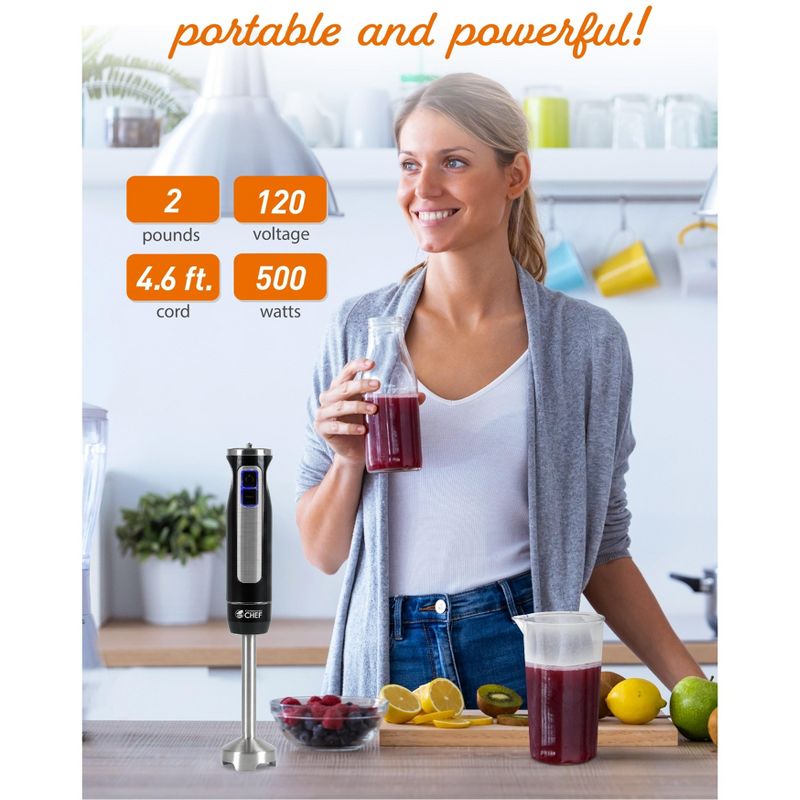 COMMERCIAL CHEF Immersion Multi-Purpose Hand Blender with 8 Speeds 500W, Black