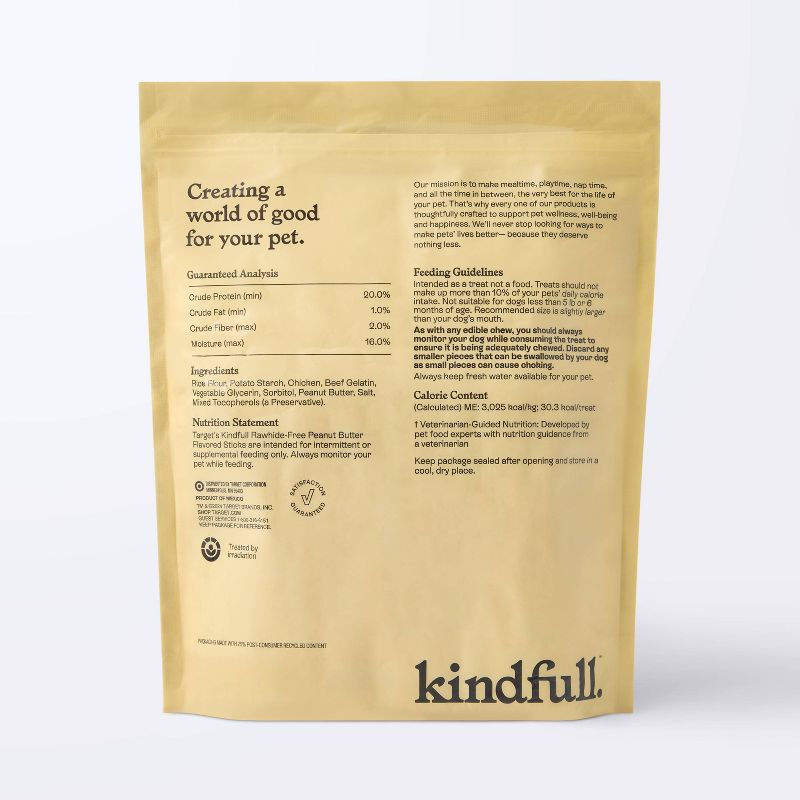 Hide Free Peanut Butter Flavor Recipe Stick Dog Treat - Kindfull™ - 14.1oz/40ct