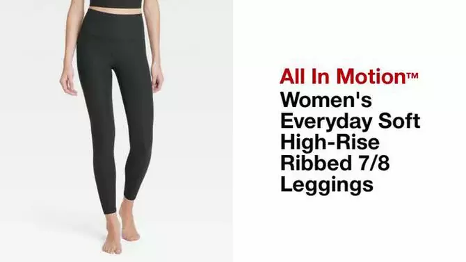 Women's Everyday Soft High-Rise Ribbed 7/8 Leggings - All In Motion™ Black M: Moisture Wicking, Quick Drying