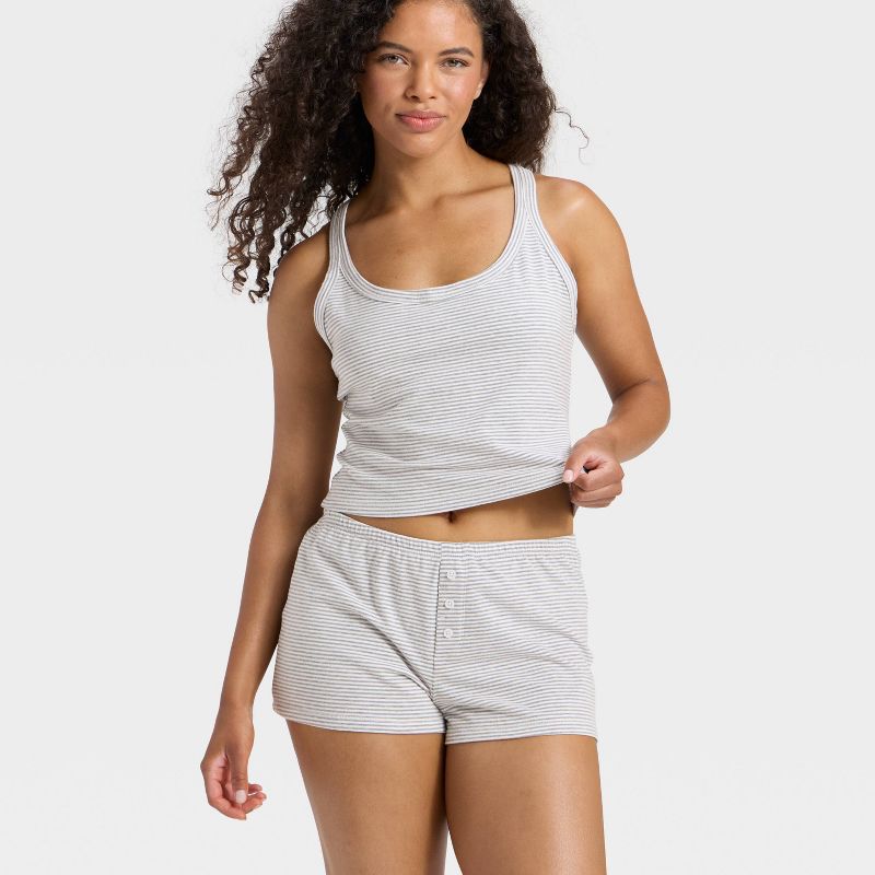 Women's Jersey Tank Top and Shorts Pajama Set - Wild Fable™ Gray Stripe L