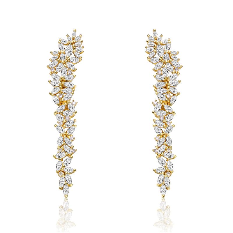Guili Glamorous 14k Gold Plated Cubic Zirconia Waterfall Cluster Linear Earrings Ð Sparkling, Elegant Jewelry with a Chic and Dazzling Design