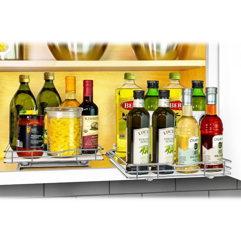 Lynk Professional Slide Out Vertical 12.25" Single Metal Spice Rack Silver: Kitchen Cupboard Organizer, Pull Out Storage