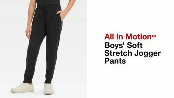 Boys' Soft StretchJogger Pants - All In Motion™ Black Onyx S: Recycled Polyester, Spandex, Moisture Wicking, Quick Drying, Zippered Pocket