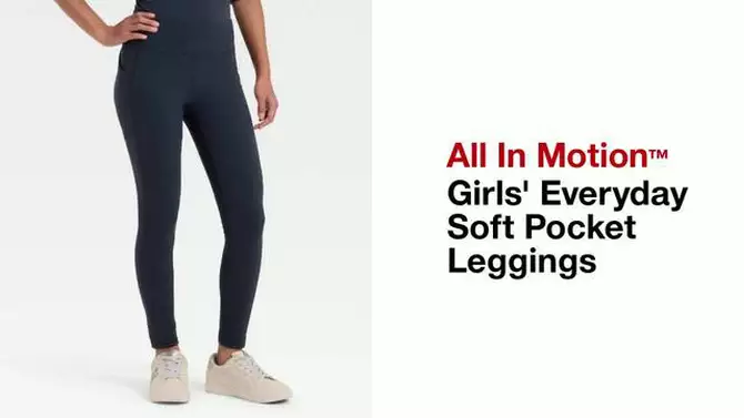 Girls' Everyday Soft Pocket Leggings - All In Motion™ Black Onyx L: High Rise, Moisture Wicking, UPF 50+