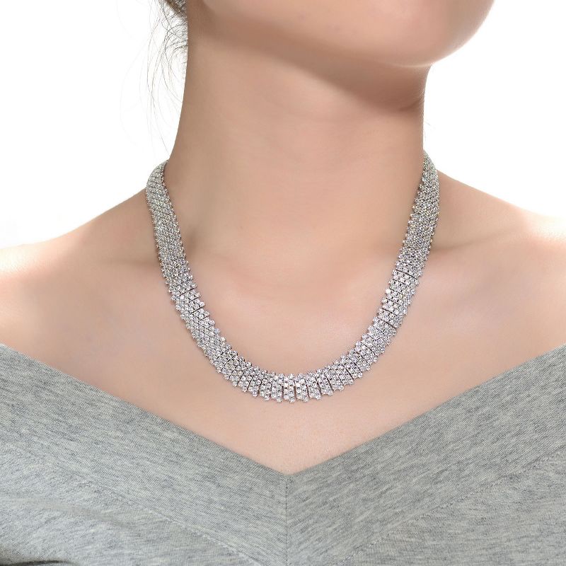 Guili Sterling Silver Rhodium Plated Round Cubic Zirconia Linear Pave Necklace, Modern and Chic Minimalist Jewelry for Special Moments