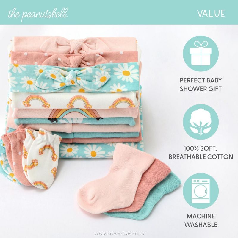 The Peanutshell Carefree Floral Newborn Layette Set for Baby Girls, 16-Pieces, Pink/Aqua, 0-3 Months