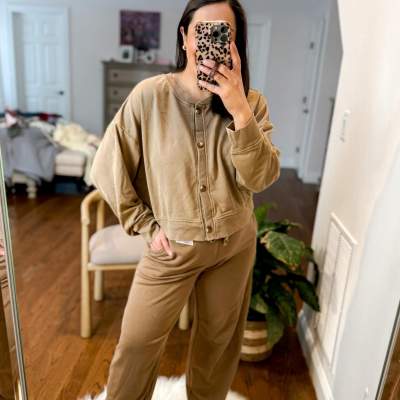 Women's French Terry Barrel Leg Lounge Pants - Auden™ Brown S