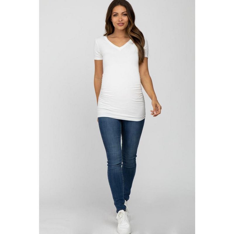 PinkBlush Ivory V-Neck Ruched Side Maternity Top Ivory Small