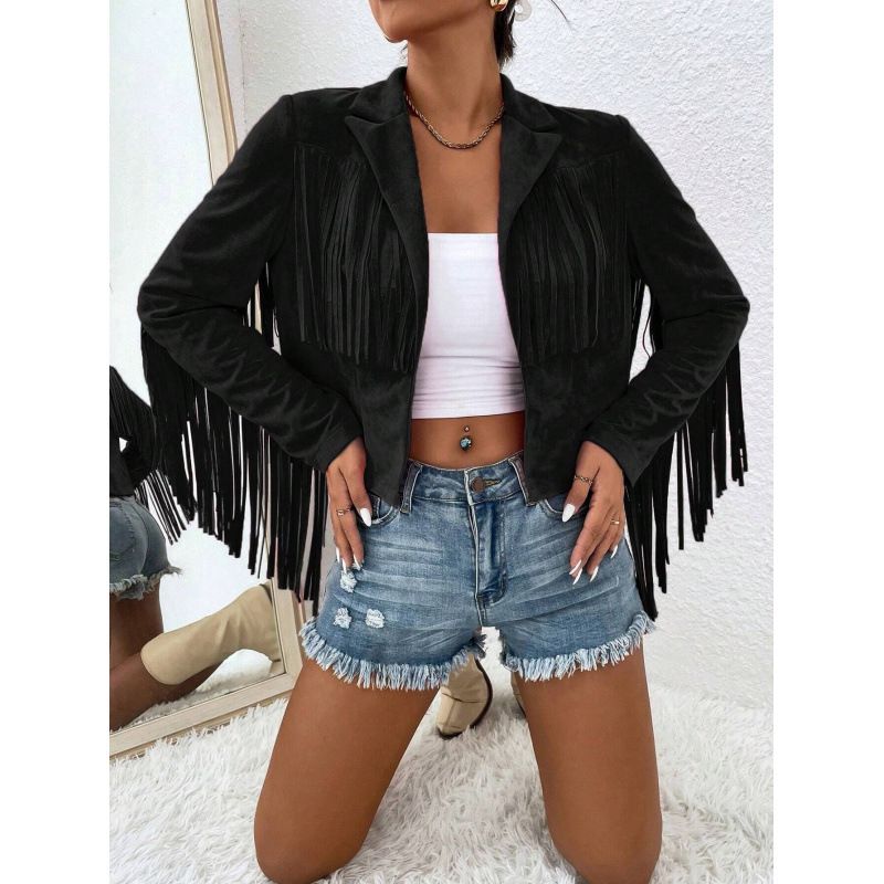 Coolmee Women's Faux Suede Leather Tassel Jackets Cropped Fringe Coats For Women Spring Fall Fashion jacket Black M